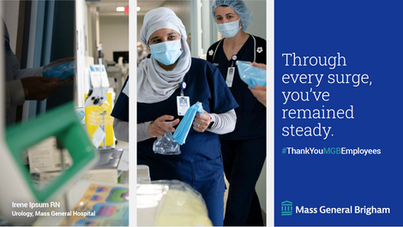 Covid thank you campaign for Mass General employees: When the virus hit, the doctors, nurses, and administrators stepped up to care for people who were sick with limited resources and at great risk to themselves. These people are heros and this campaign felt like giving a little back.